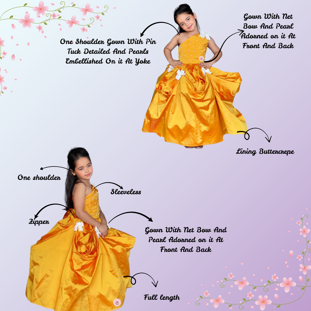 - Gown With Net Bow And Pearl Adorned on it At Front And Back