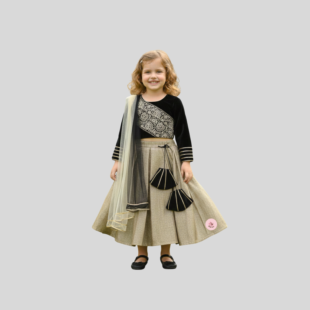 - Lehenga With Gota Work Velvet Tassels Attached At Front