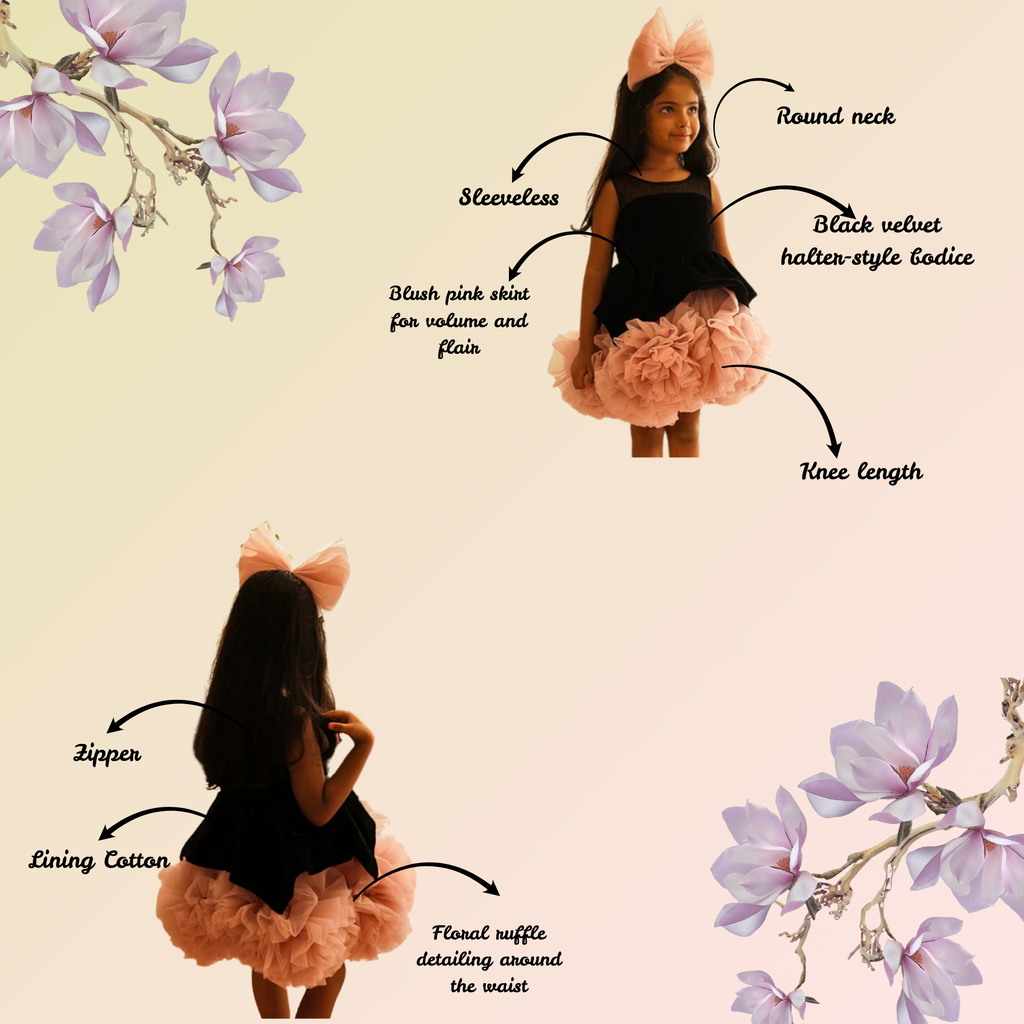 - Floral ruffle detailing around the waist