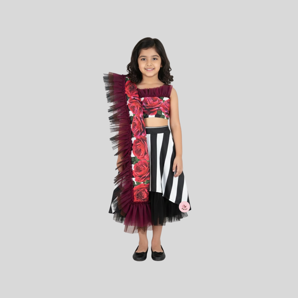 - Black n white ghaghra choli with red roses