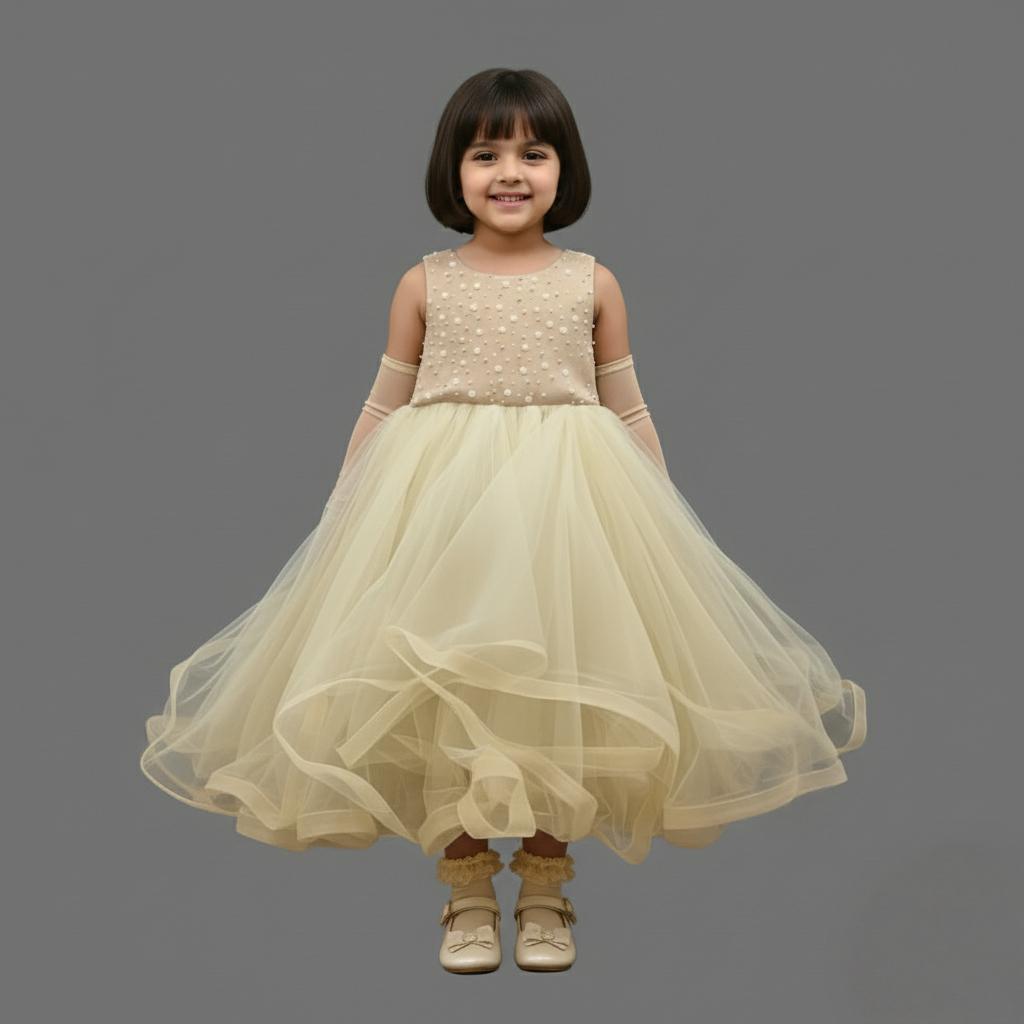 - Gown With Pearls & Mini Flower Work At Front